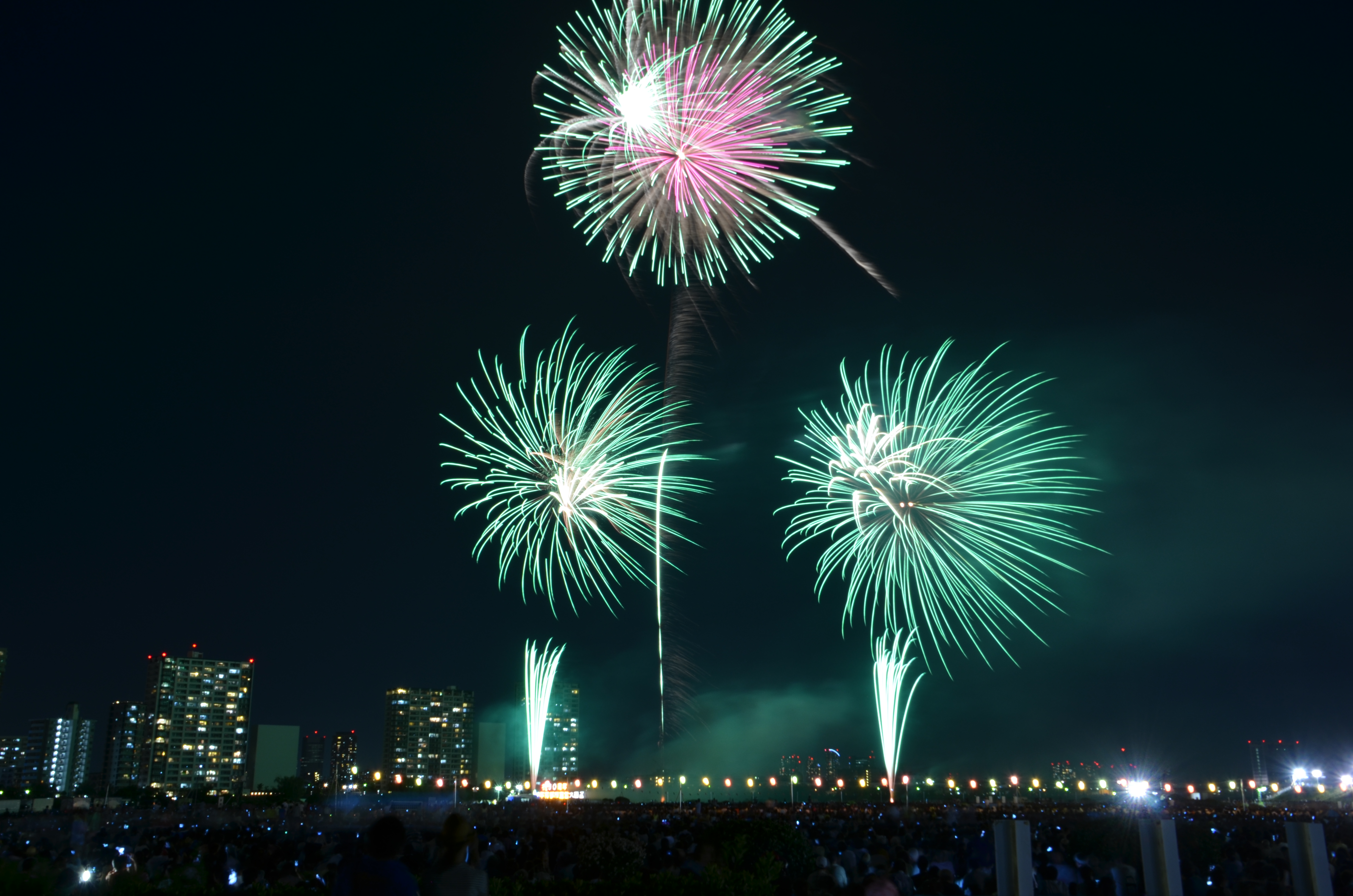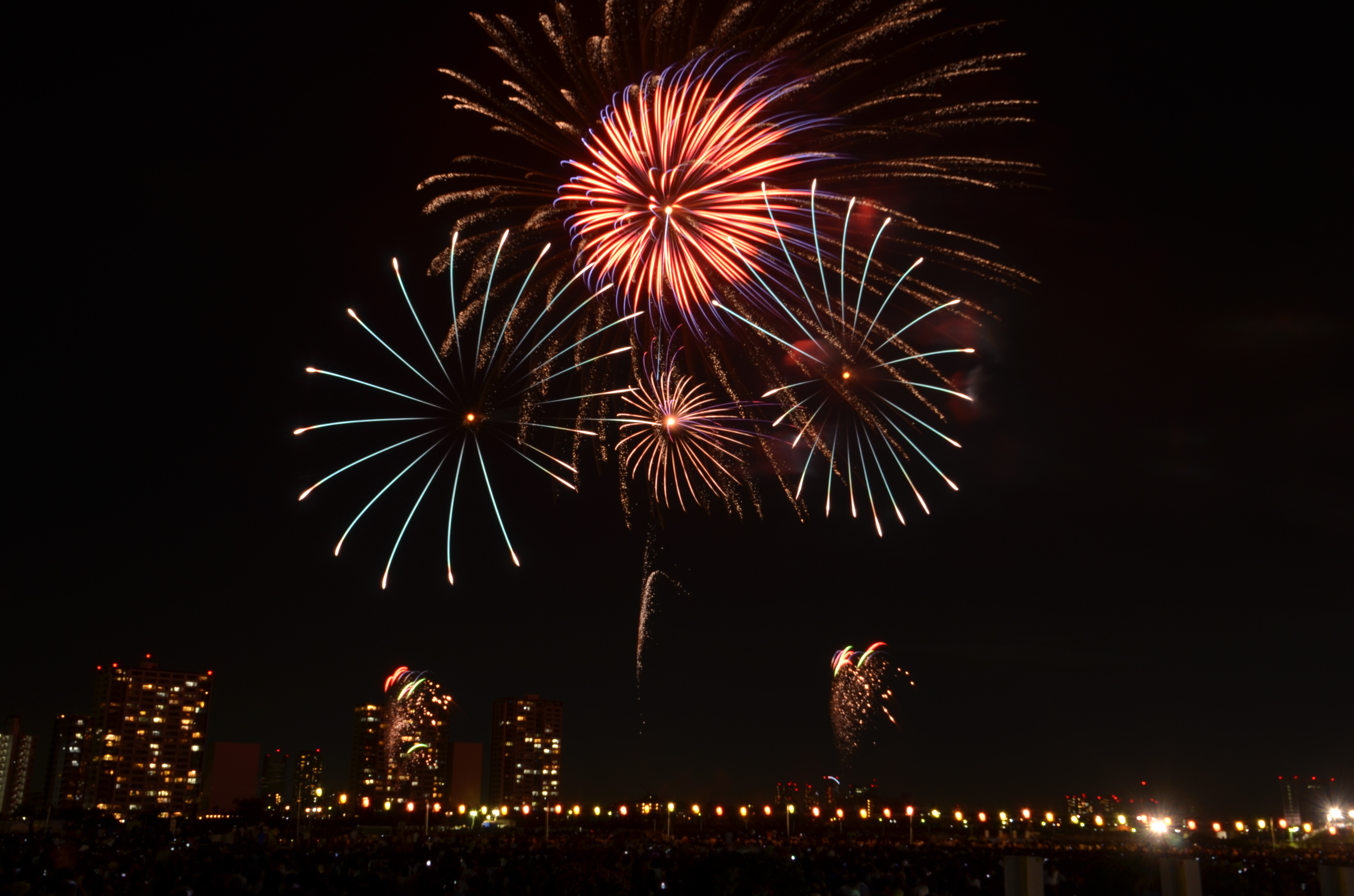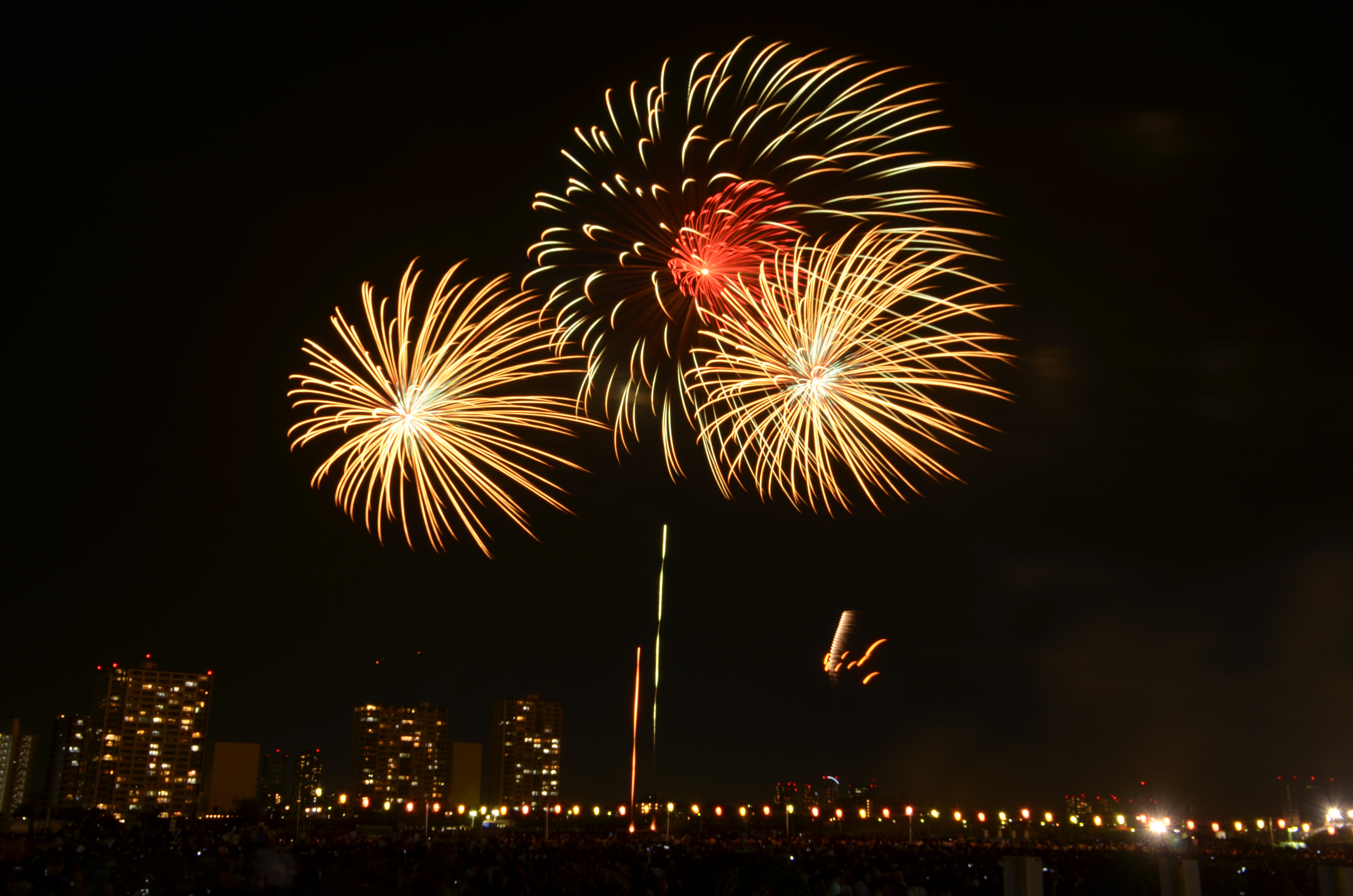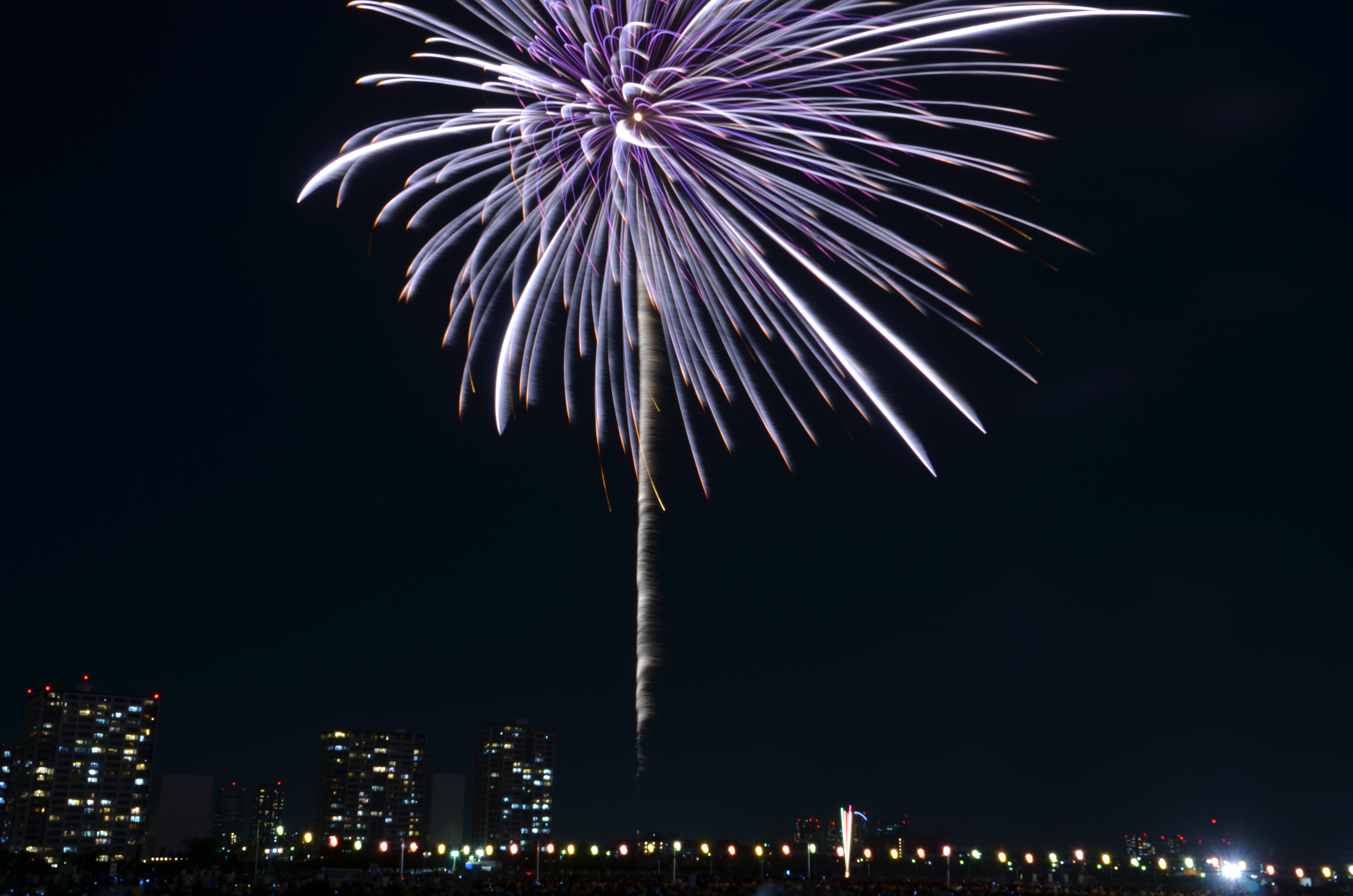 花火が上がると、たぶん僕の単焦点では遠過ぎた感じ。