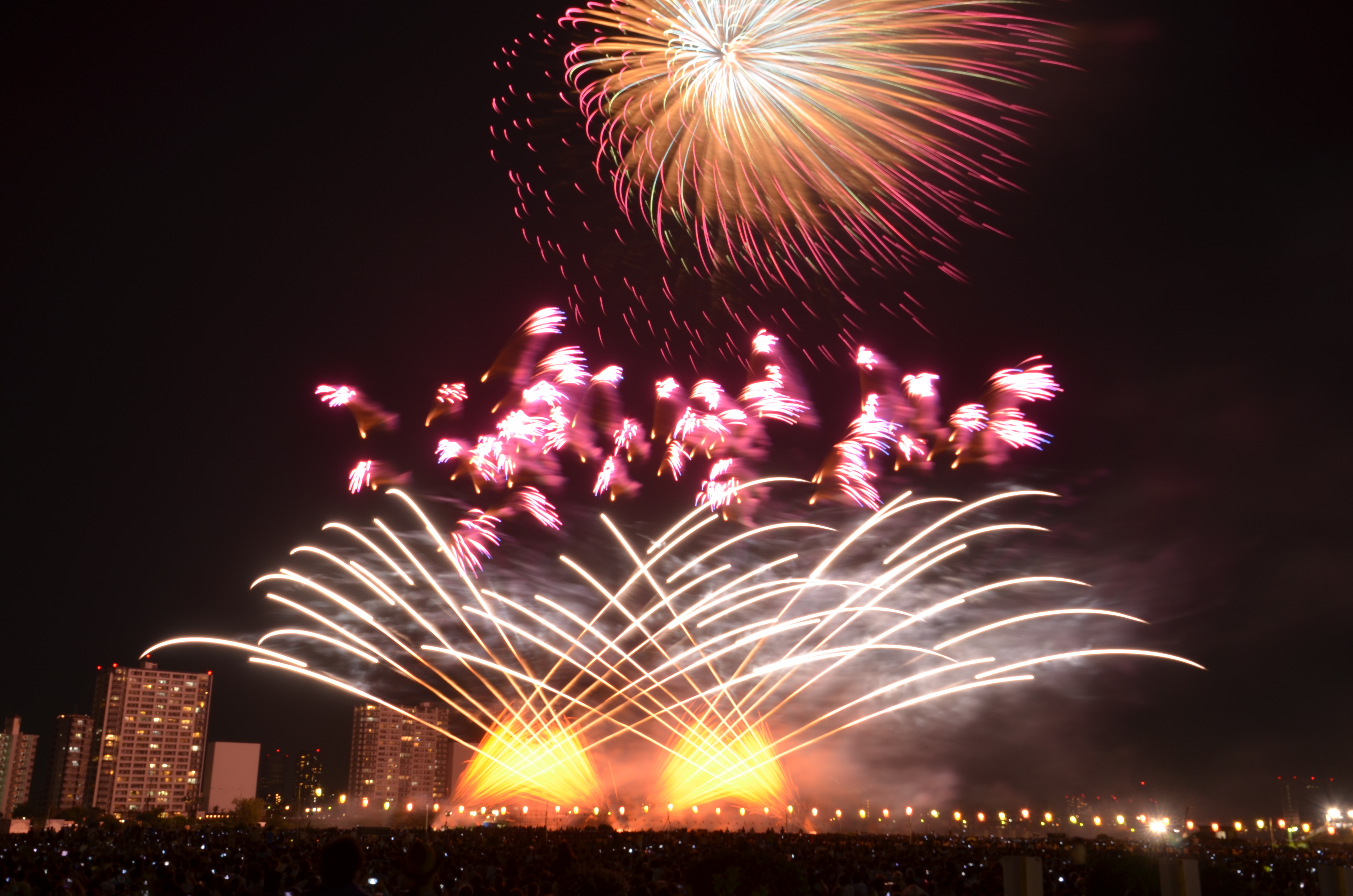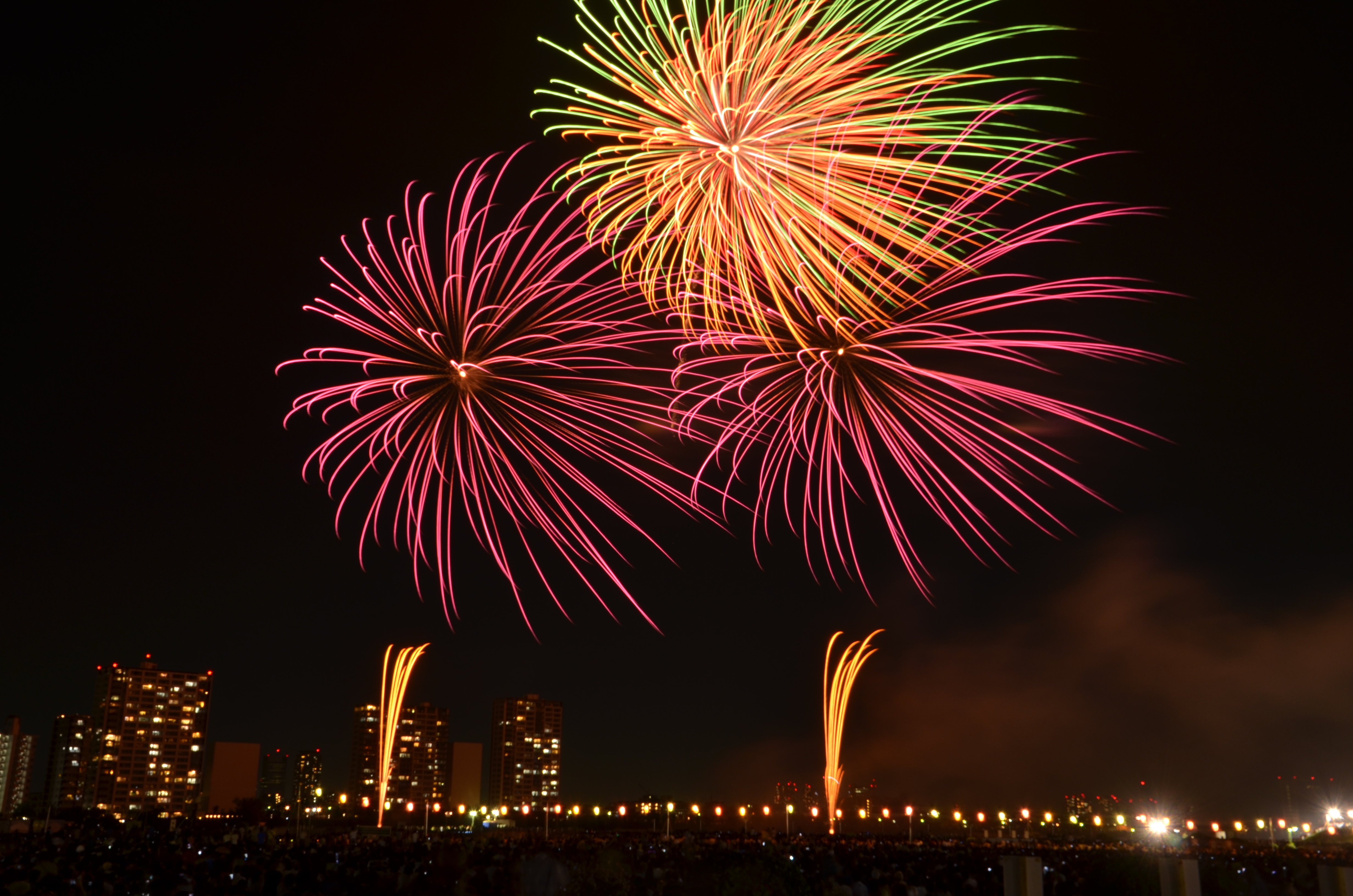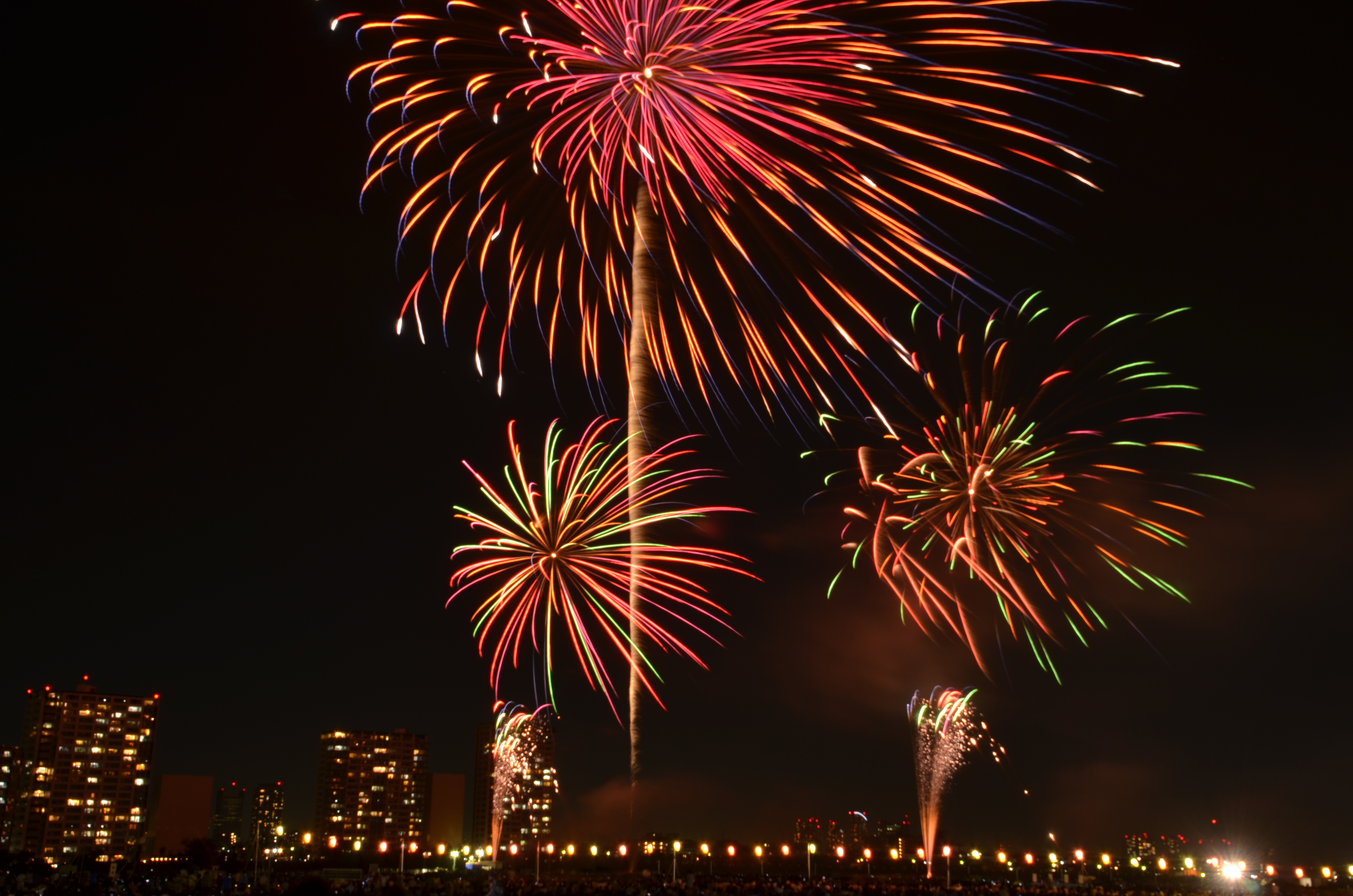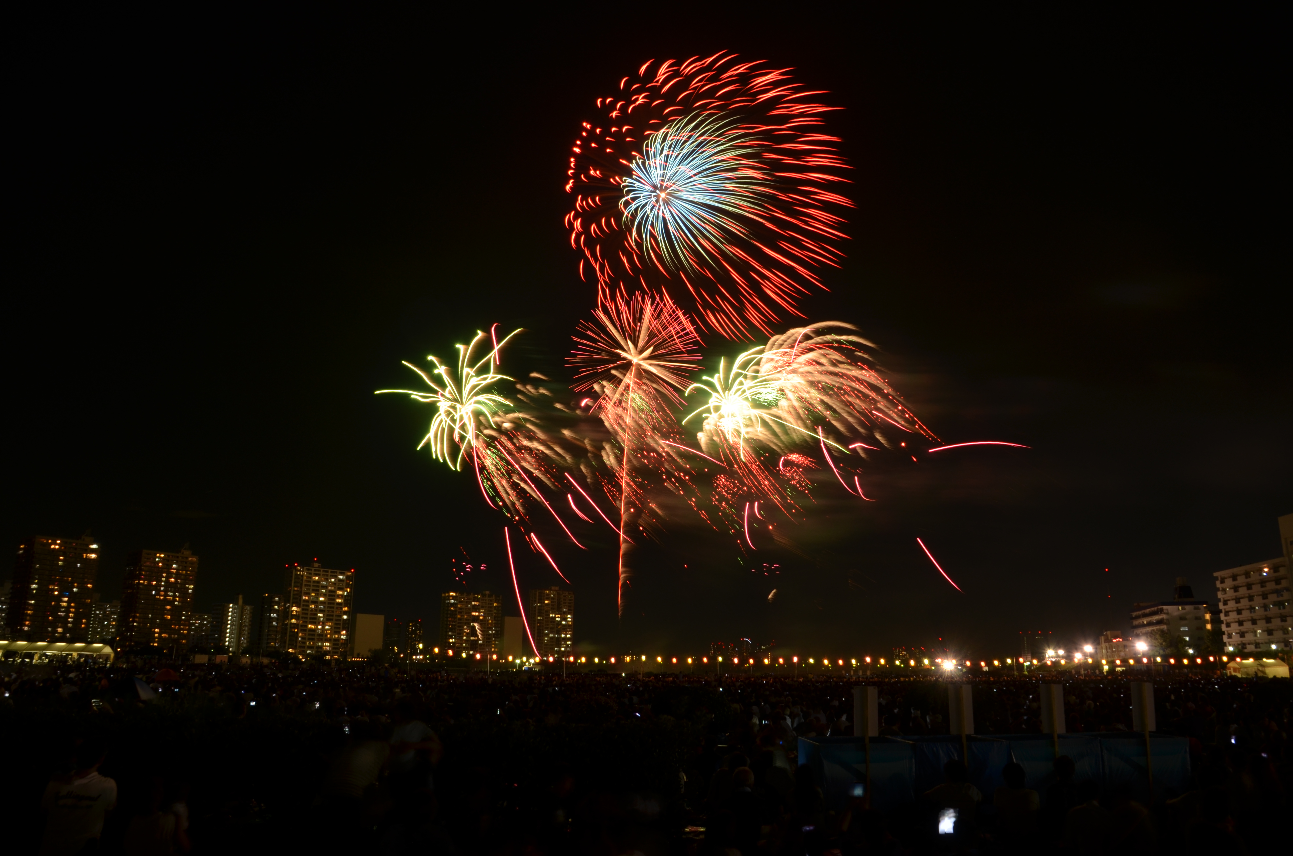 花火が上がると、たぶん僕の単焦点では遠過ぎた感じ。