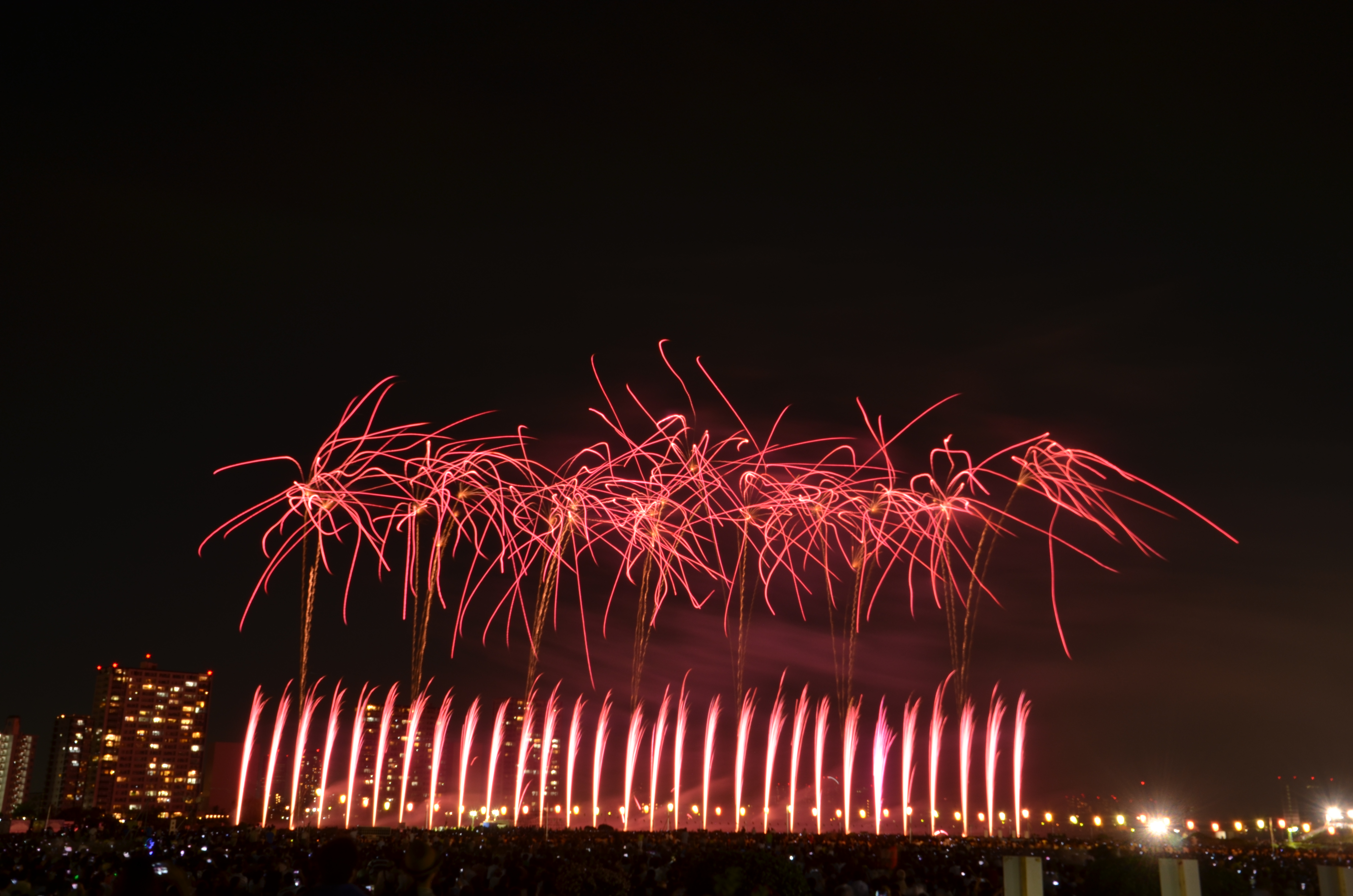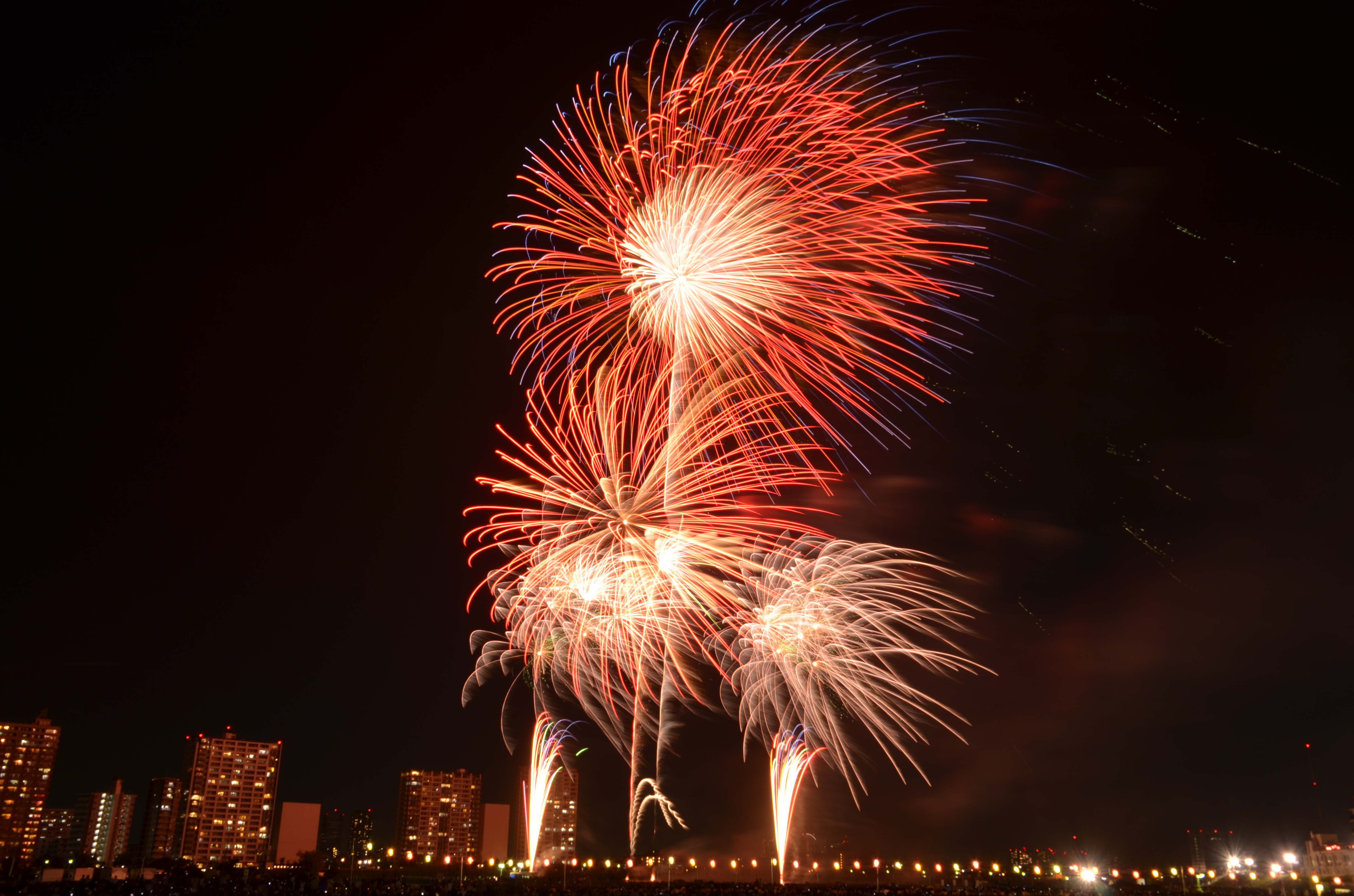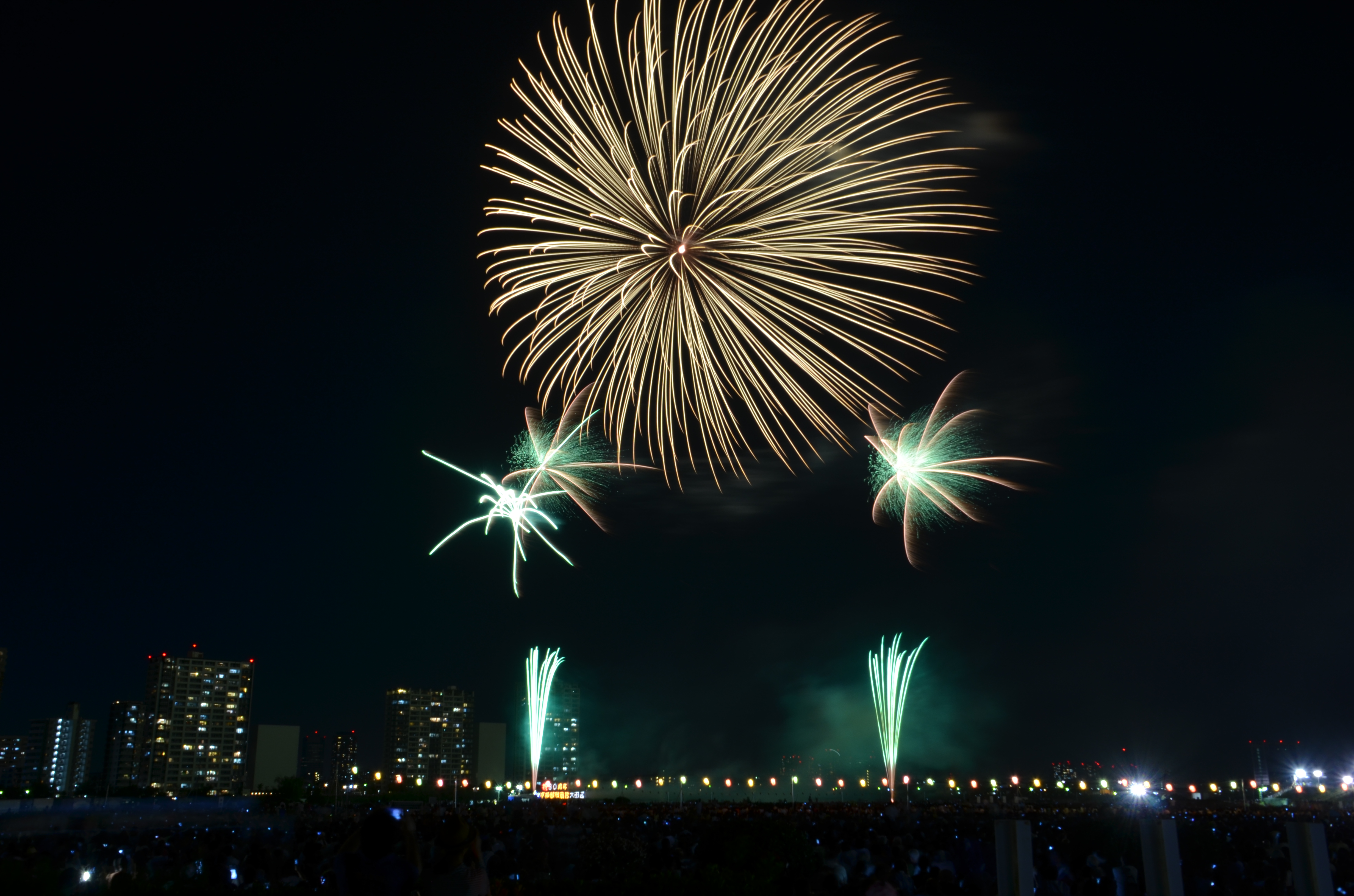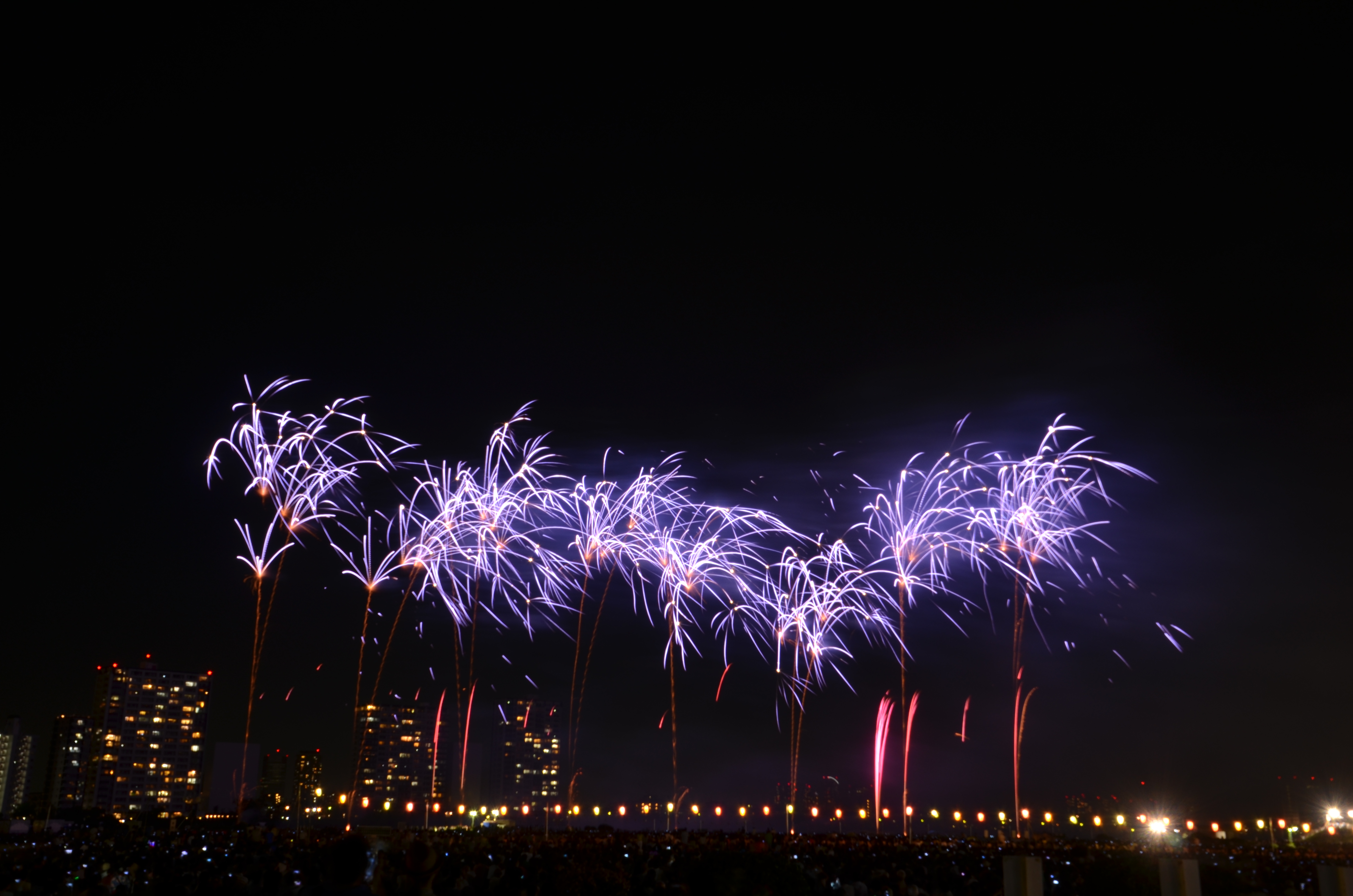 花火が上がると、たぶん僕の単焦点では遠過ぎた感じ。