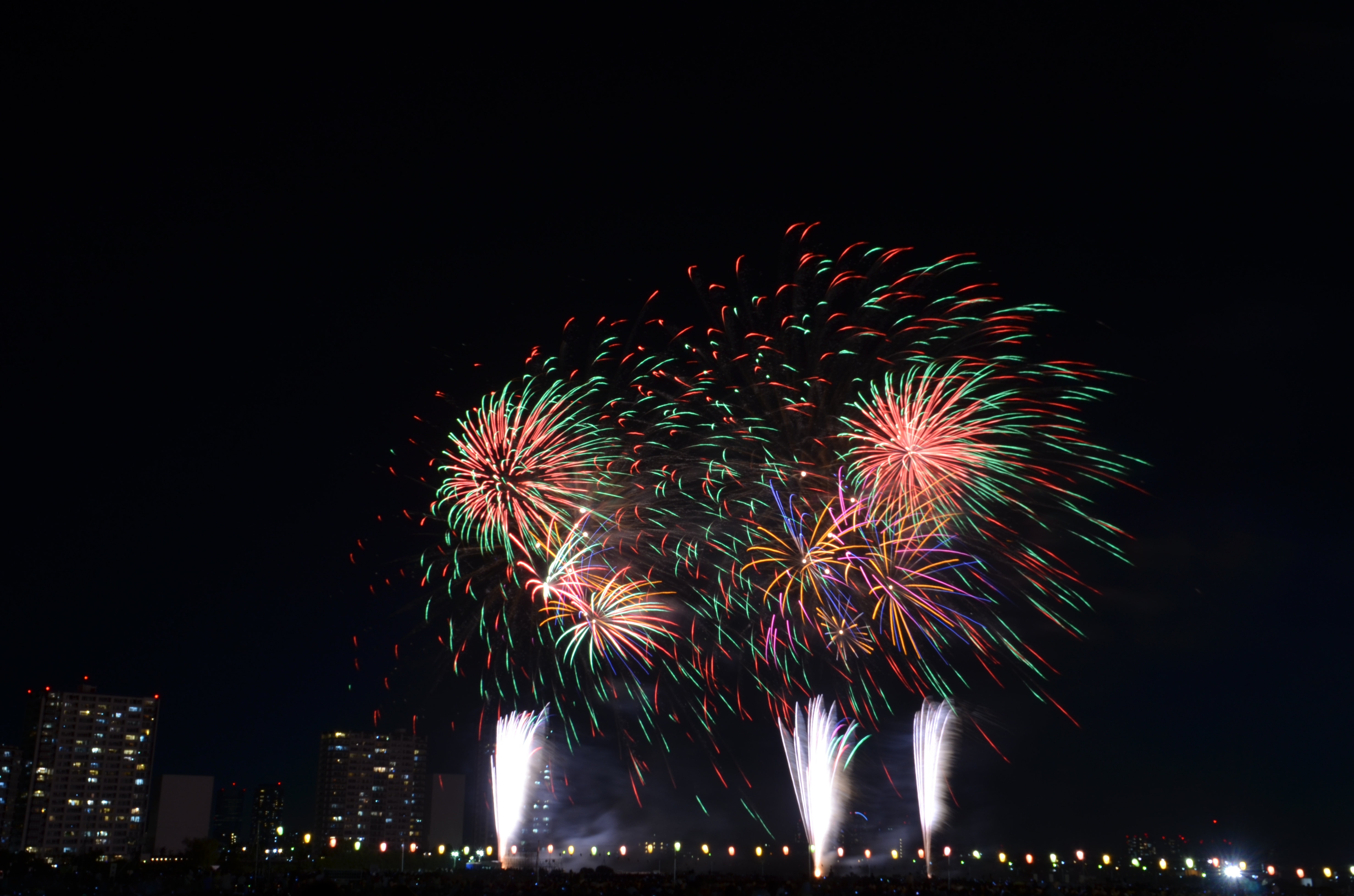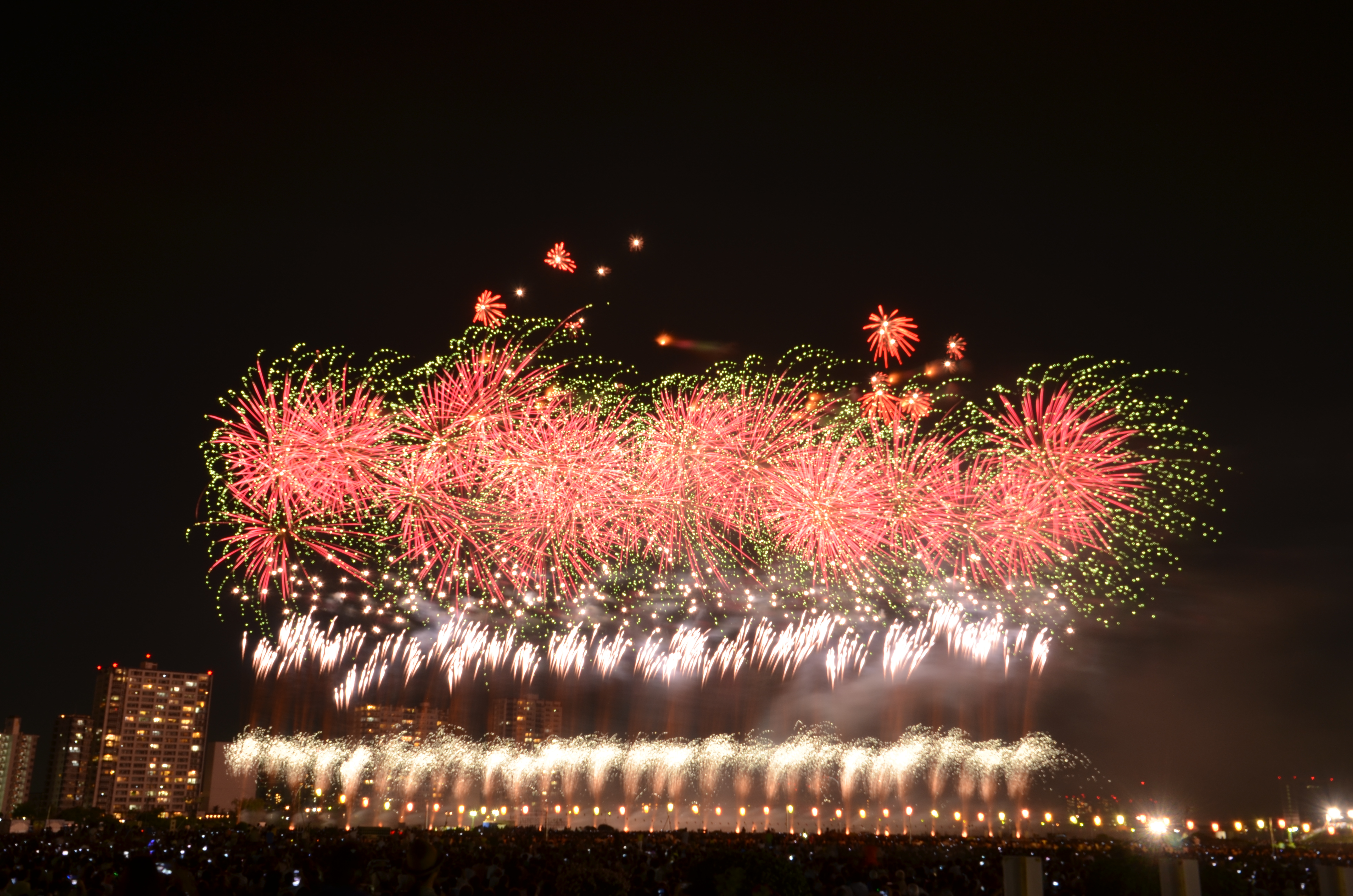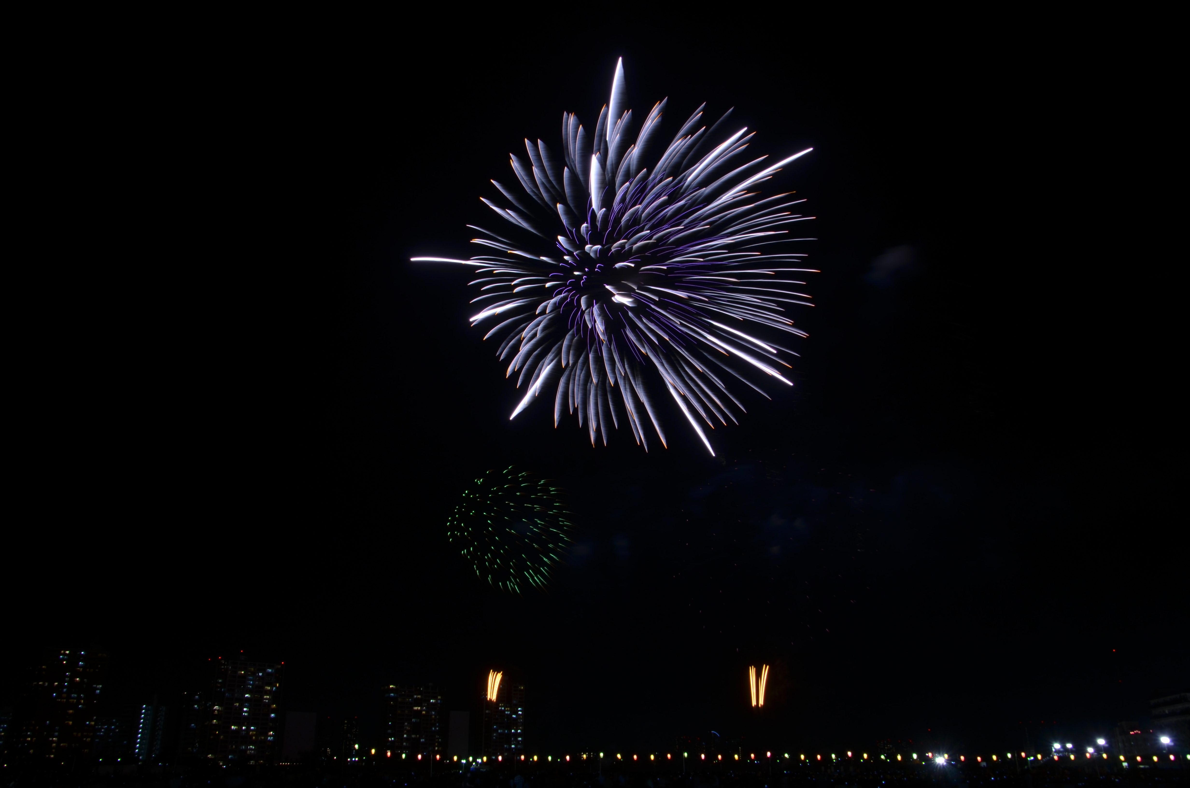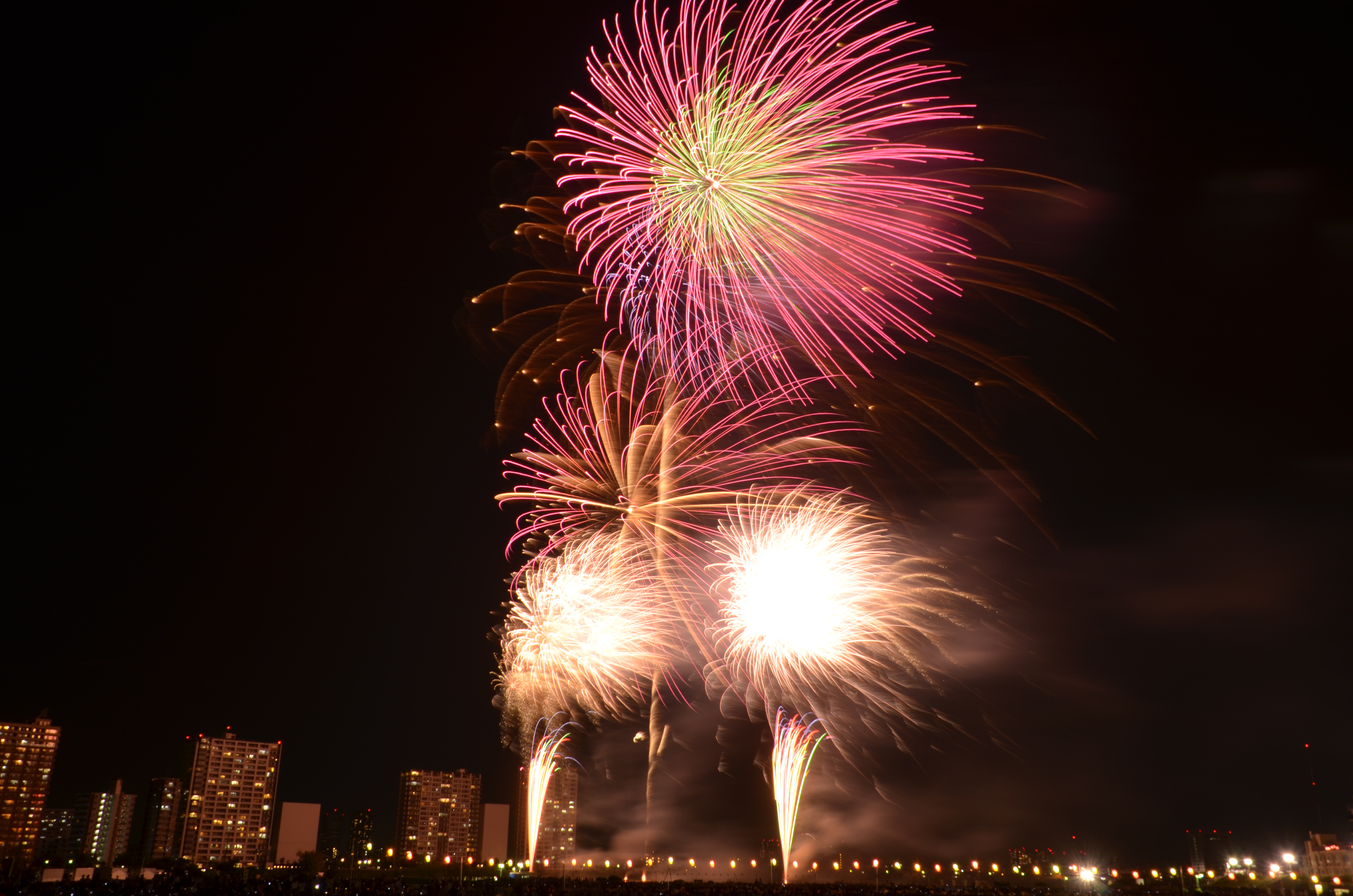 花火が上がると、たぶん僕の単焦点では遠過ぎた感じ。